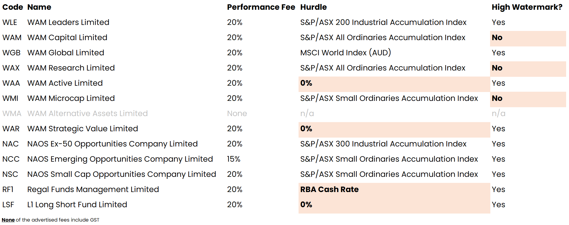 I note that L1 Capital via LSF and Regal Funds Management Limited via RF1 do a lot of shorting, which is super expensive, and that is a good and reasonable explanation for why their fees are so much higher.