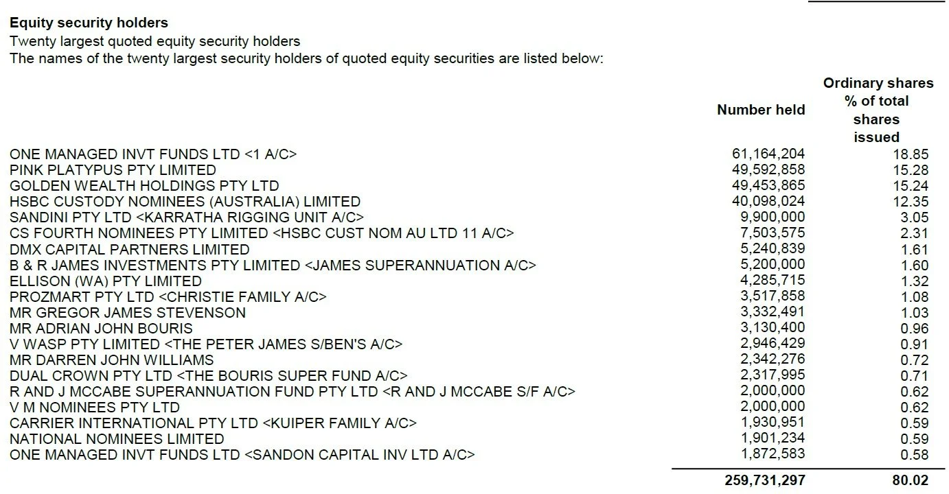 Pink Platypus Pty Limited, which is a subsidiary of Nine Entertainment aka Channell Nine, sits on over 15% of the company.